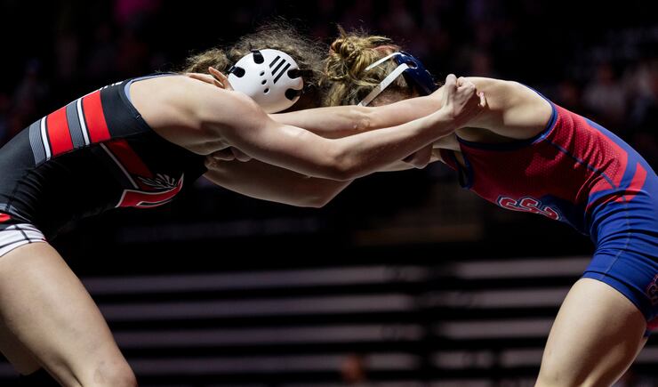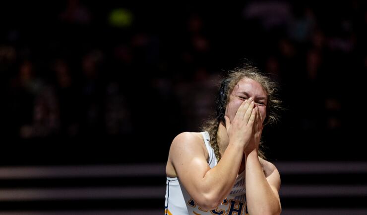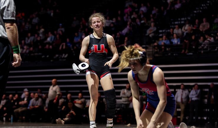 Tooele’s Lindsey Hansen had an emotional win over Ridgeline’s returning individual state champion Keagan Grange.