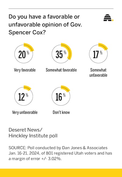 While Cox’s favorability numbers remain in the green, they have come down from their 2022 and 2023 levels, according to the Deseret News’ poll.