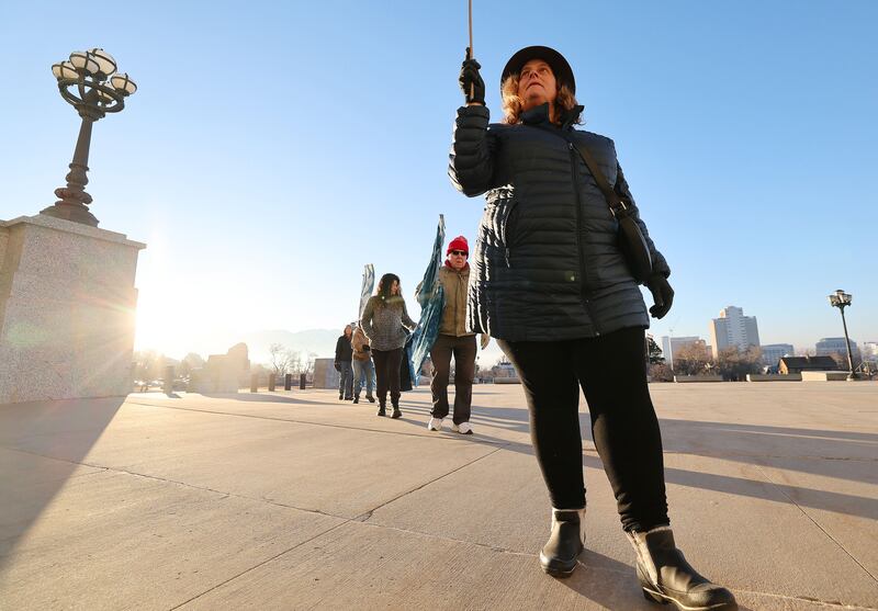 While the mornings are a silent walk on the Capitol grounds, the evenings feature a jubilant celebration. Each day at 5 p.m. until the end of the session on March 1, community members gather in what’s called the “Celebrate the Species” vigil. It’s where brine shrimp and other animals at the Great Salt Lake are celebrated with jubilant music. It’s brought Seymour closer to a member of her family who comes to the vigil every evening and she describes it as “so tender.”
