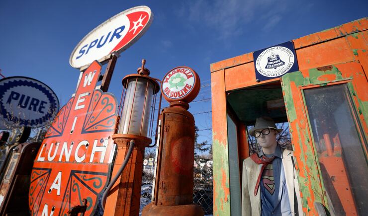 Sparky is building an event center across the street that will hold 500 people, housing airplanes (like the tiny BD-5J featured in a “James Bond” movie), antique vehicles and hundreds of signs. He tells me it’s opening this spring.