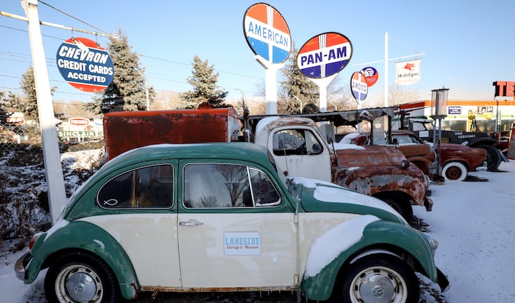 Now the Lakeside Museum at Lakeside Storage boasts what is likely the world’s largest collection of pole signs (215 visible pole signs, with 14 waiting to be installed), generating interest internationally. Sparky told me he believes the second largest collection is in Lubbock, Texas, with around 150 signs.