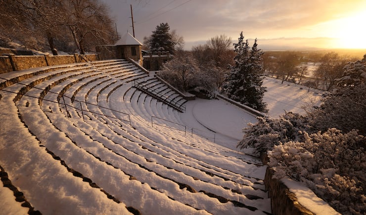On 1300 East Center Street, nestled among the 3-acre grounds of a psychiatric hospital run by the Utah Department of Human Services, you can find a 800-seat, 18-tier stone amphitheater with various medieval battlements and towers scattered about the stone work. This was all built through federal New Deal programs such as Works Progress Administration during the Great Depression.