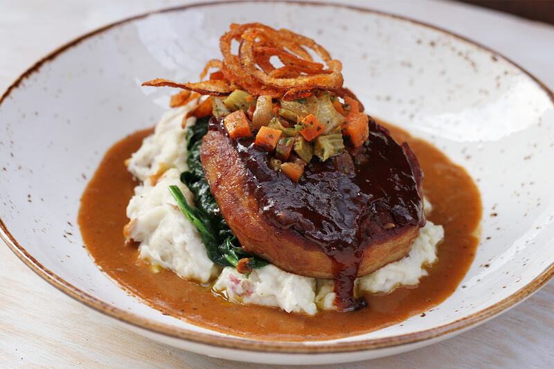 Lazy Dog features comfort food “with a twist that highlights seasonal ingredients,” according to the company. Its menu includes many of the restaurant classics, along with Western-themed dishes like campfire pot roast, grilled Idaho trout and bison meatloaf. Some of its cocktails also have a Western lodge flair.