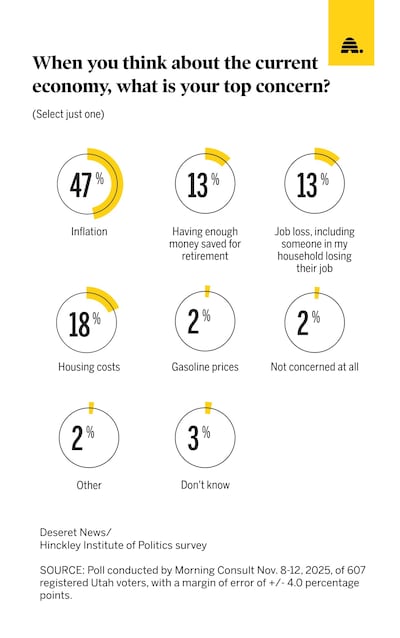 - Americans and Utahns identified inflation as their top concern in a new poll.