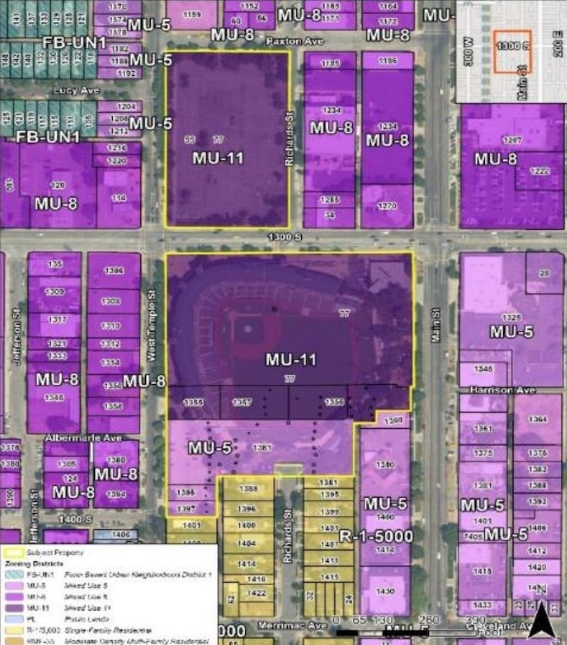 This map shows the proposed new zoning for the outgoing Smith's Ballpark, and how it fits with some of the other zones in the neighborhood. | Salt Lake City