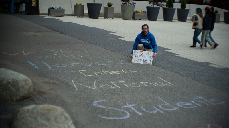 MacKay was participating in a “solidarity demonstration” May 23 after the Department of Homeland Security termination of international student visas. MacKay and several other students and professors made signs and took photographs to show their support for the international student community.