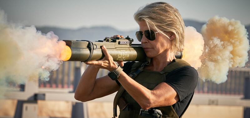 “Dark Fate” dispenses with all the other post-T2 sequels and attempts to reboot the franchise with the story of a different young woman targeted by robotic assassins from the future.