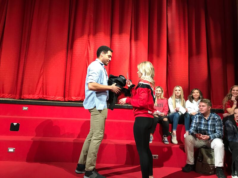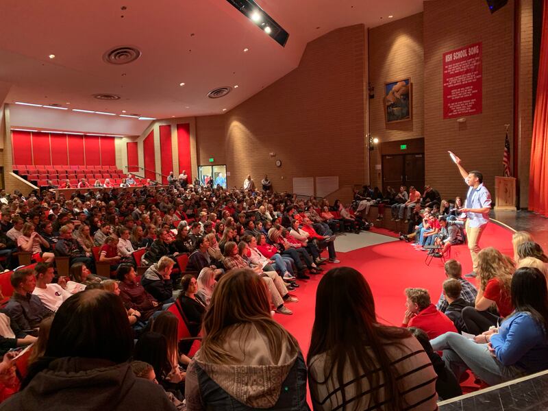 At 9:20 a.m. on Nov. 1, students began filling the rows of the North Sanpete High School auditorium in rural Mount Pleasant. Fifty students sat along the edge of the stage. Sixty-five students were given cards with numbers on them. And then it was showtime.