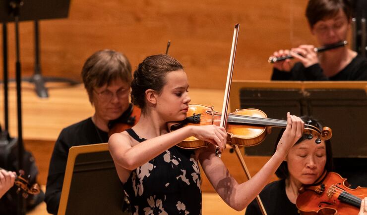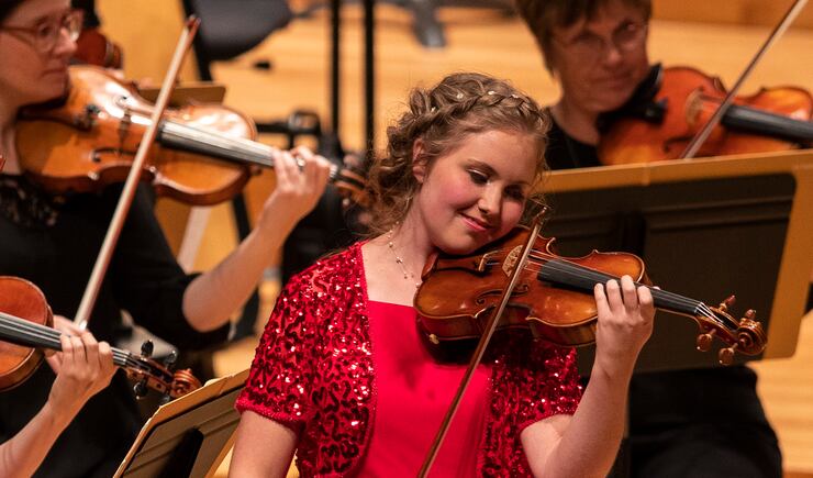And all of the performers, whose ages ranged from 12-18, swayed as they played. Evelyn Meiwes, the youngest performer of the night, kicked the concert off with Edouard Lalo’s “Symphonie espagnole.” It took three auditions for 12-year-old Meiwes to land a spot in the annual Salute to Youth concert, and she wasted no time showing off her skills.