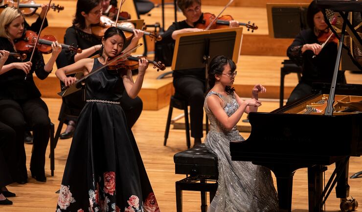 Closing out the concert’s first half was the second Mendelssohn piece of the night — the concerto for violin and piano in D minor. Before the performance, 16-year-old violinist Ellen Hayashi joked that the hardest part of the piece was “measures one to the end.”