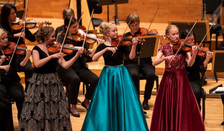 That love for the violin shined bright as she dug her bow into the strings. She even gave a little smile as she nailed the highest note in the piece. After finishing the Mendelssohn, the 16-year-old violinist had five minutes to rest — enough time to change into another dress — before taking the stage again, this time with her younger sister, 14-year-old Eliza Hart, and friend Sarah Kendell, 14, in a performance of Vivaldi’s Concerto in F major for three violins and orchestra.
