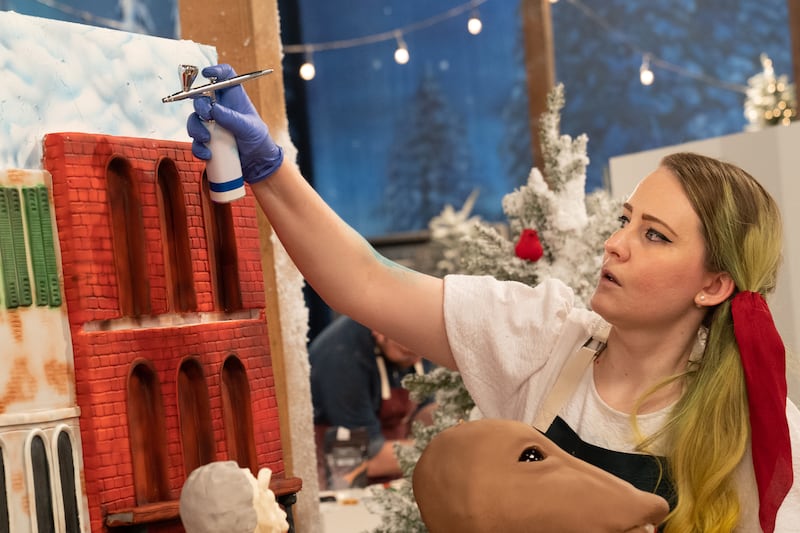 Miller, who specializes in wedding cakes, applied to be a cake artist on the Christmas baking show, but was cast as her team’s sugar artist and pastry chef after Food Network found out about her experience working with isomalt, a sugar substitute.