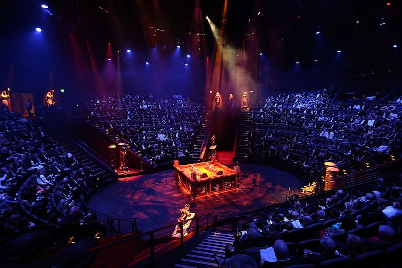 While the performers don’t wear masks, the theater has made adjustments to ensure proper distancing between the actors and audience. Physical distancing is also enforced in front of restrooms, concessions and other locations where lines typically form.