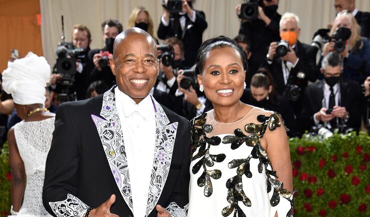 New York City Mayor Eric Adams sported a suit jacket with a bold call to “End Gun Violence.” Adams is a gun control advocate, but has received backlash for his approach to how to curb gun violence, per The New York Times.