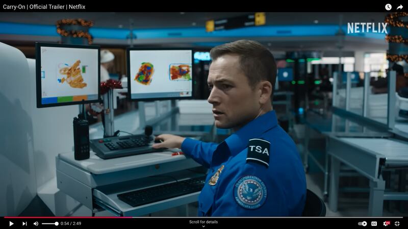 The movie follows TSA agent Ethan, played by Taron Egerton, as he “fights to outsmart a mysterious traveler who blackmails him into letting a dangerous package slip onto a Christmas Eve flight,” per Netflix.
