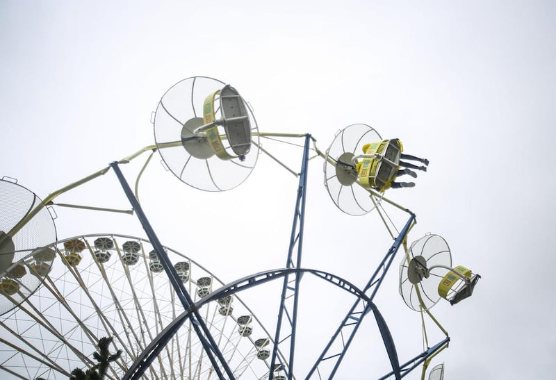 The ferris wheel looms large behind a group of Irish step dancers, and you can also catch glimpses of the Paratrooper, Samurai and Rocket rides throughout the scene.