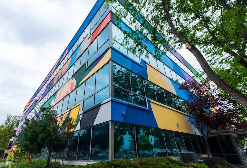 DAAS, a Texas-based artist, painted the south side of the building in a colorful, abstract interpretation of the nature surrounding it. However, it ultimately left the rest of the exterior feeling barren.