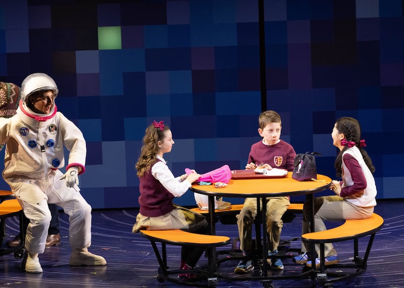 In a creative twist, Auggie, who conceals his face in an astronaut helmet when things get too overwhelming, also finds comfort in an imaginary friend named Moon Boy. This invisible, grown-up astronaut is absent from both the novel and movie; but in the musical, he expresses much of Auggie’s inner dialogue through song.