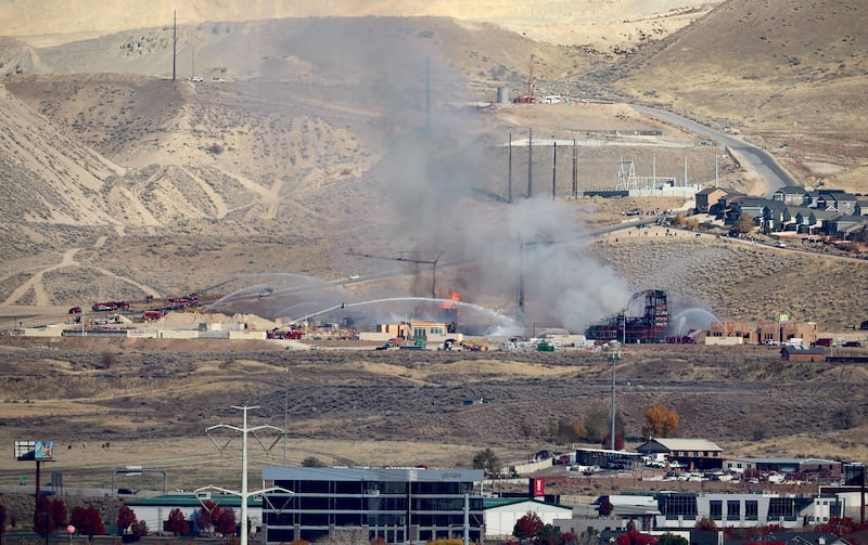 A large fire broke out Sunday in the Lehi area at the Point of the Mountain, sending thick black smoke and flames high into the air as witnesses reported hearing what may have been an explosion.