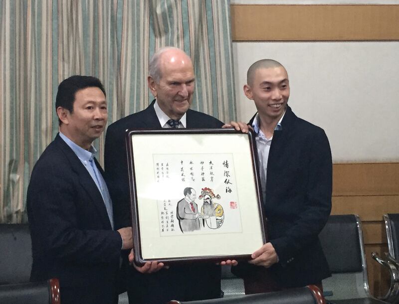 In 2015, President Nelson returned to China, where he was honored at the Shandong University School of Medicine, where he pioneered heart surgery in the country. Doctors at the school now perform 2,000 heart operations each year. During that visit, he was honored by doctors, the opera star’s family and many others. He also was presented with the declaration as an “Old Friend of China.”