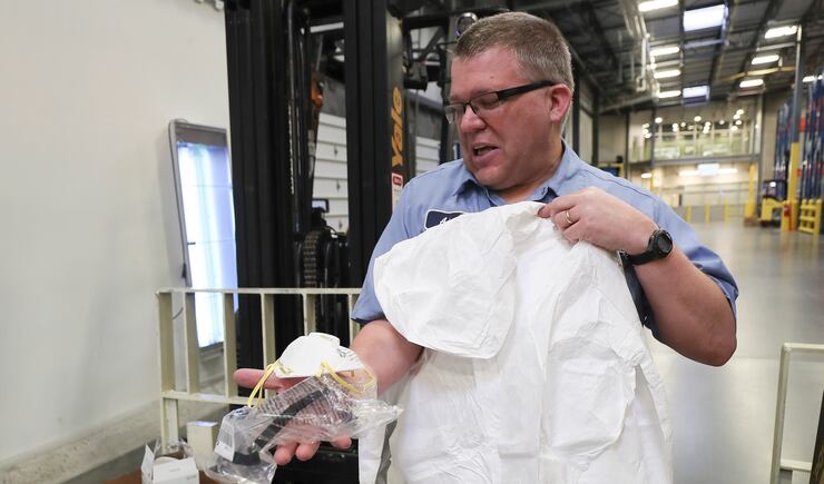 The church loaded 220,000 particulate respirator masks, more than 6,500 pairs of protective hospital coveralls and 870 pairs of protective goggles at two bishop’s central storehouses in Salt Lake City and Atlanta on Wednesday morning.