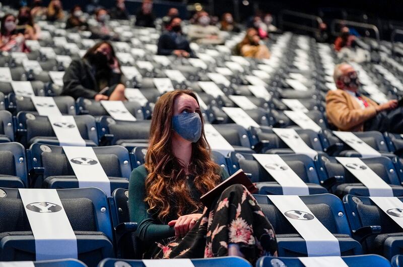 The students, faculty and staff who attended Tuesday’s devotional were also required to show they had a green indicator on the daily checkup screen of the Healthy Together app, which BYU is using to help the campus community complete a daily checkup and to contact trace the spread of COVID-19.