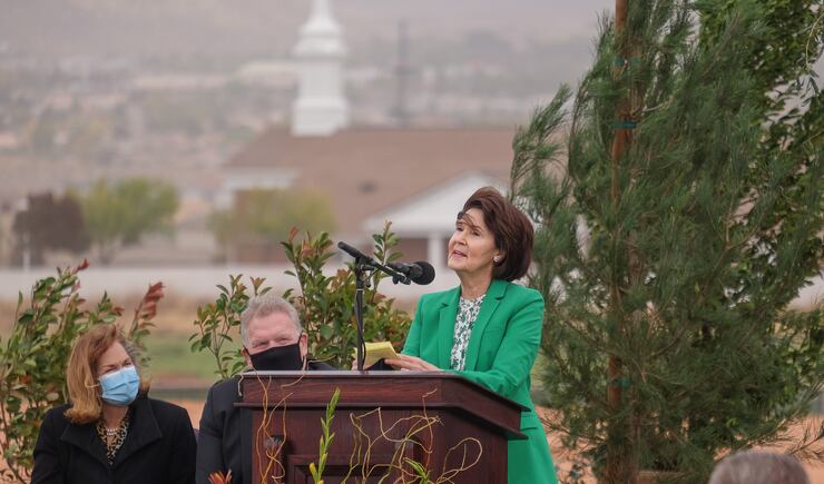 Sister Holland spoke during the ceremony and called temples the ultimate sacred places. She also said Saturday was a happy, holy day for her.