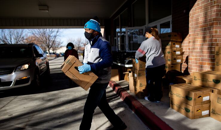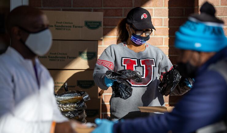 In its last initiative of a yearlong effort, volunteers from the Calvary Baptist Church congregation distributed 300 boxes to people in the Muslim, Hispanic and African American communities of Salt Lake City while also passing out 50 bags of food to individuals on the street Saturday.