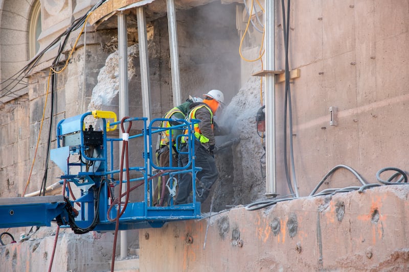 Workers dismantled a part of the temple’s foundation added in 1960 to prepare for future drilling.