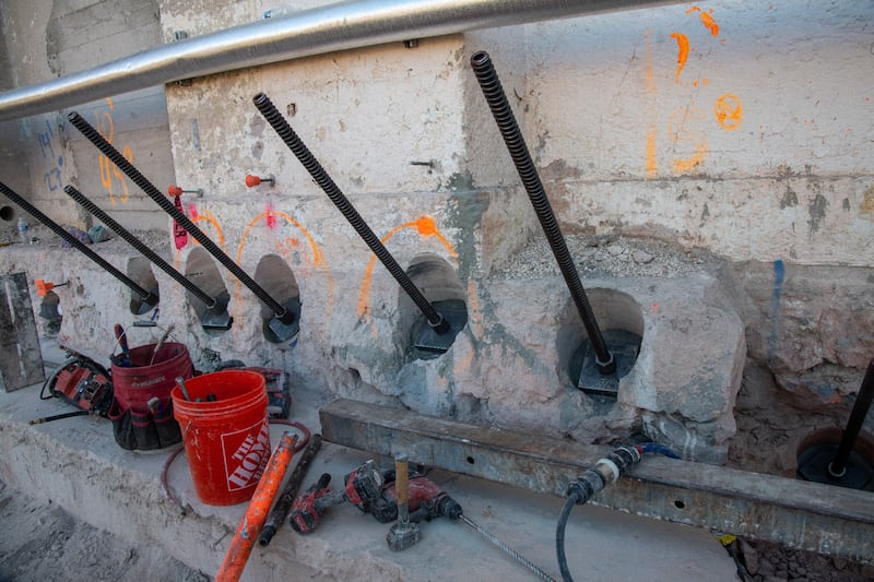 Construction crews used tension rod coring to strengthen the temple’s foundation. The process involved drilling into the footings at different angles and inserting a threading rod in gout. The rod is then tensioned to create pressure against the stones, thus helping consolidate the footings, the Nov. 6 report said.