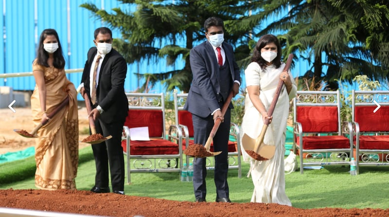 The groundbreaking was attended by a small group of local leaders. Some men wore suits and some women wore dresses. Others wore traditional Indian clothing. All wore face coverings to follow local health guidelines during the pandemic.