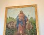 The simple one-story brick chapel is lined with wooden pews and hymnals. Light shines through the stained-glass windows. A small pulpit and pump organ stand at the front of the chapel beneath a life-size painting of Jesus, the good shepherd with his flock. In the back of the chapel there’s a potbelly stove and a rope ascending to a bell tower.