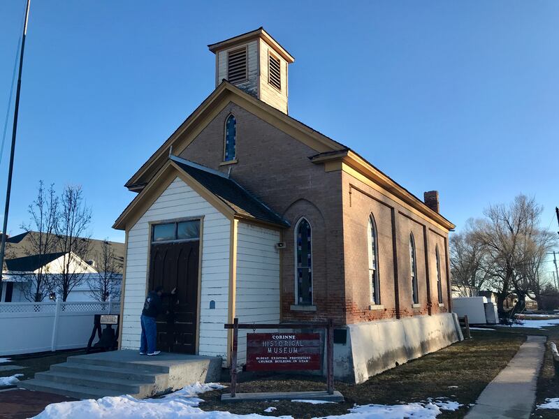 The Methodist Episcopal Church was constructed in 1870 and is said to be the first Methodist church in Utah. A sign out front also declares it to be the “oldest existing Protestant Church building” in the state. It’s been a landmark in the community for more than a century, said Merkley, the mayor of Corinne.