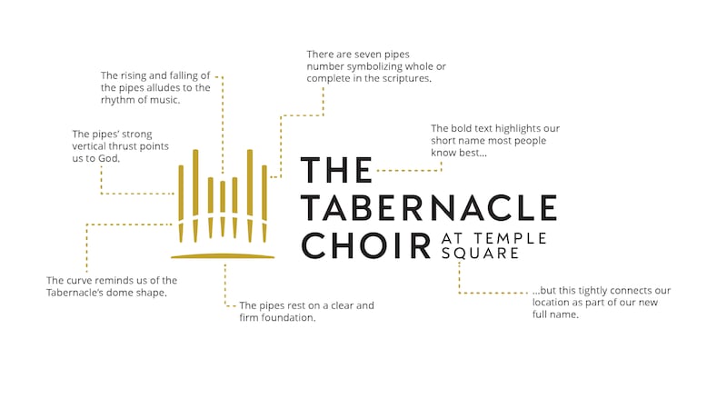 The logo includes the name of the choir and seven gold-colored organ pipes representing the famed organ in the Salt Lake Tabernacle, the choir’s home for 153 years. It also honors the choir’s 173-year history, said Ron Jarrett, president of The Tabernacle Choir at Temple Square.