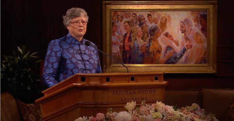 “We wish we could meet with you in person at the Marriott Center on the Brigham Young University campus,” said Tracy Browning, of The Church of Jesus Christ of Latter-day Saints’ Relief Society general board, “but instead, we’re sending you virtual hugs and lots of love.”