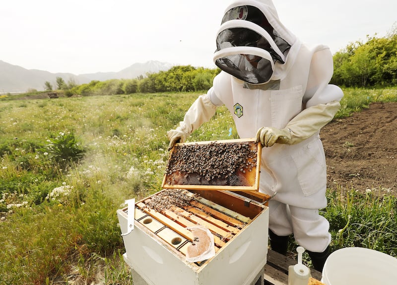 More than 10 years later, the Bells work together to oversee the church’s community garden and beekeeping ministries on its 11-acre property in a rural part of Marriott-Slaterville. He primarily works the garden, and she keeps the bees.