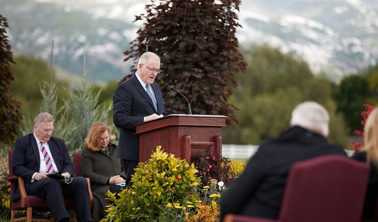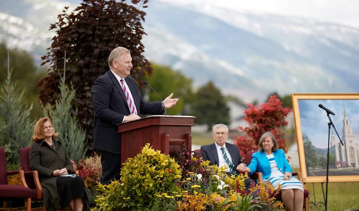 Elder Walter F. González of the Utah Area Presidency also spoke at the groundbreaking. Elder Randy D. Funk, first counselor in the Utah Area Presidency, gave the dedicatory prayer.