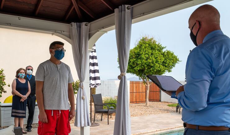 “It was definitely special,” the young man said of his backyard service.