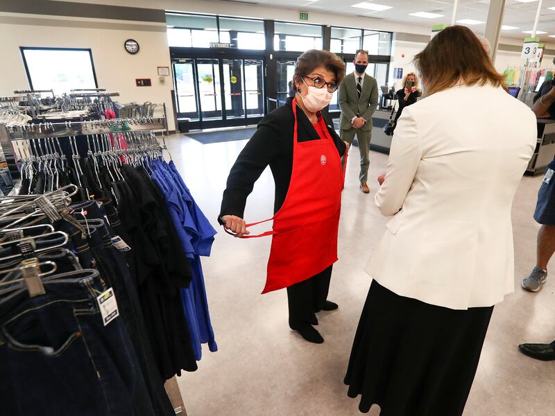 SALT LAKE CITY — A member of President Donald Trump’s Cabinet beamed when she was given a red training apron at a Salt Lake thrift store on Wednesday.