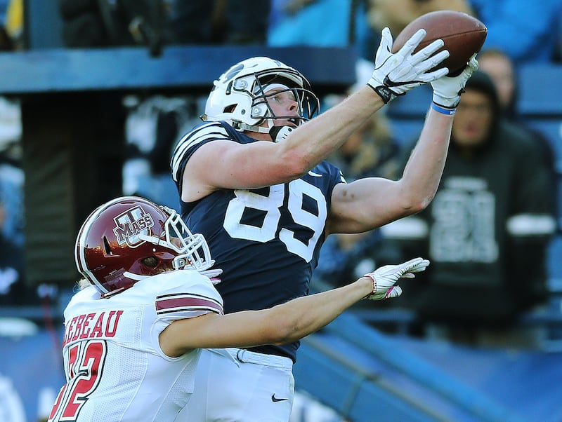 Bushman was a Freshman All-American tight end at BYU after serving in the Chile Santiago South Mission, but didn’t play last season and didn’t run the 40-yard dash for NFL scouts this spring because he continues to recover after tearing his Achilles tendon during a BYU practice last August.