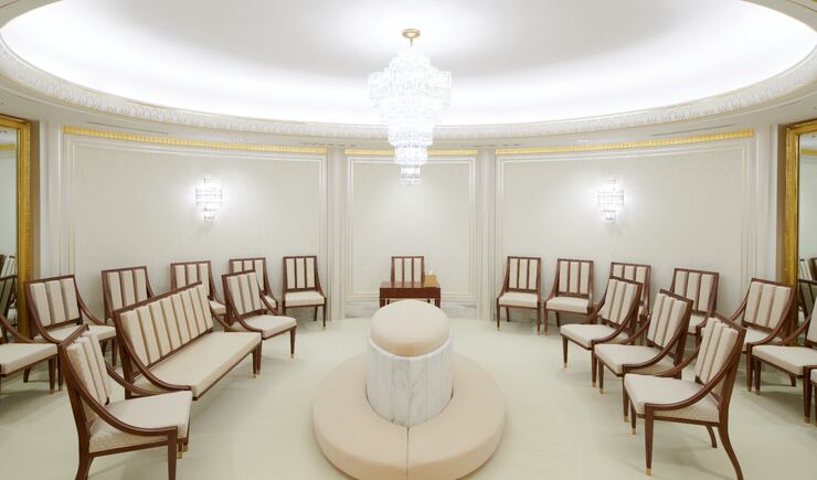 Elder Gerrit W. Gong of the Quorum of the Twelve Apostles prepared the journalists who visited Monday for the quiet peacefulness of the Celestial Room, which he called a nexus between heaven and earth. He paraphrased W.B. Yeats, asking them to seek to notice what they felt in their “deep heart’s core.”