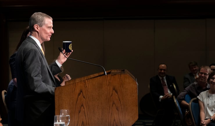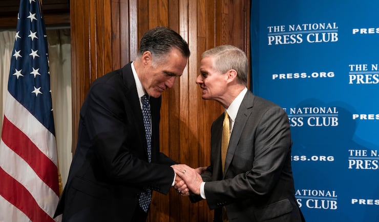 Sen. Mitt Romney, R-Utah, and Navy football coach Ken Niumatalolo joined Elder Bednar on the dais. Others at the main table included Donna Leinwand Leger, president of DC Media Strategies and past president of the National Press Club, and Michael Soto, executive director of Equality Arizona.