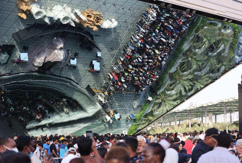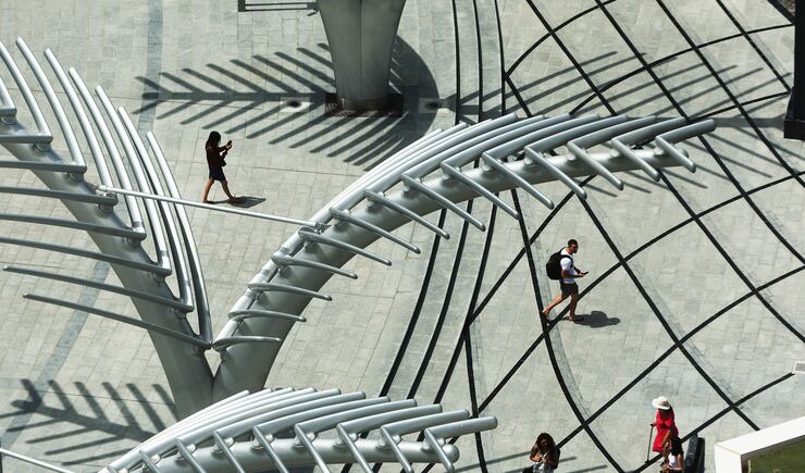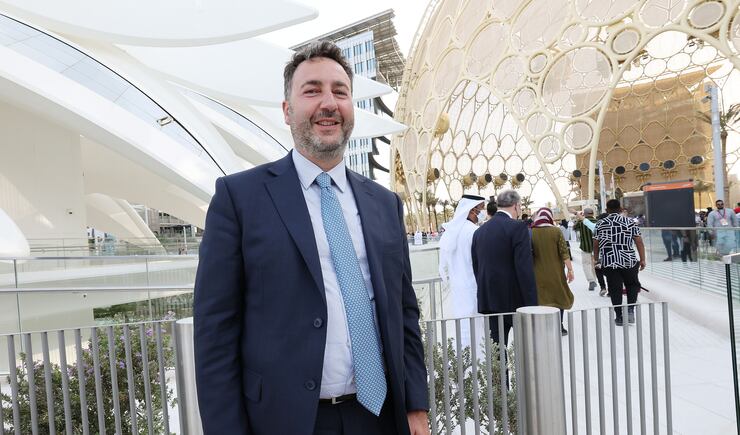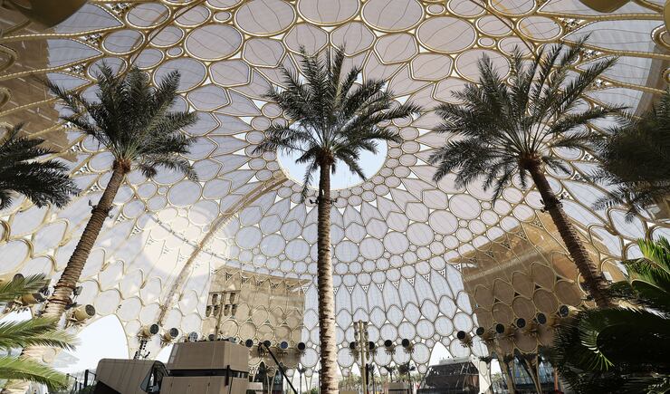 A mixture of the desert sand and gulf air tends to obscure the sun in Dubai, even as temperatures can climb well past 100 degrees. But this afternoon in late March, it’s a relatively mild 80 degrees. Criscione is dressed in a gray suit with a textured blue shirt and an Italian-designed necktie. He’s navigating a snaking line in front of the Expo entrance almost by muscle memory.
