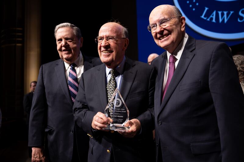 “It’s remarkable,” Abrams said. “I would never have dreamt that a young Jewish liberal lawyer would one day be in this situation and be the recipient of such a wonderful award.”