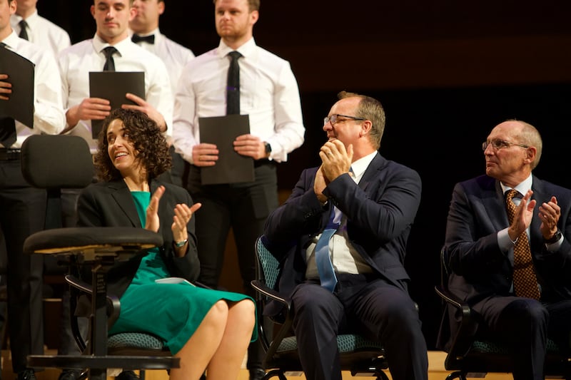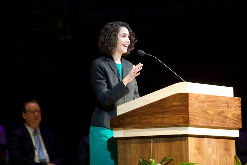 D. Carolina Núñez, an associate dean at the law school, and a graduate, expressed feeling like she was surrounded by family: “BYU law is my alma mater. I feel like I’ve grown up here. ... This is my community, and as I look out over you I feel like this is my family.”