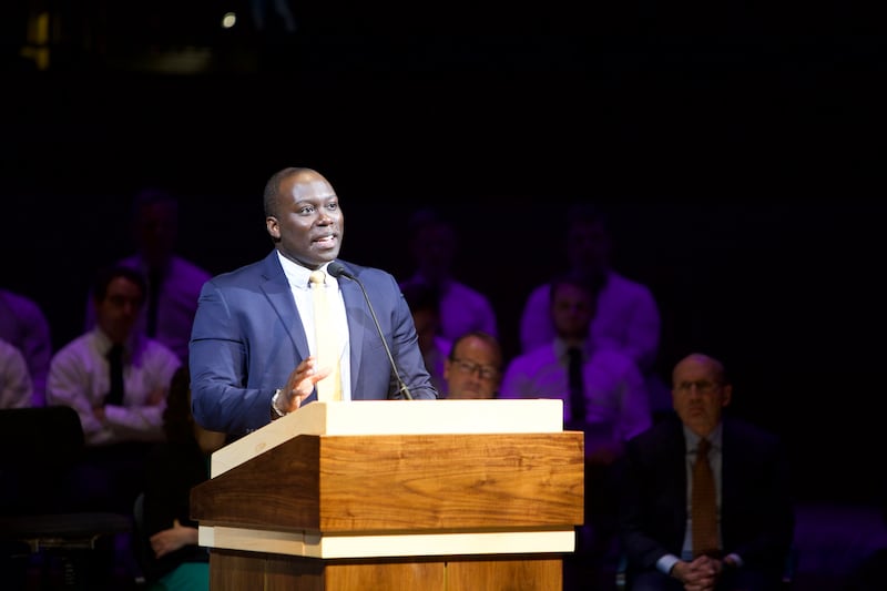 To this fall’s first-year law students, he remarked, “We need people who have not abandoned faith, who have not abandoned hope, who have not abandoned idealism. We need people who can go out with that faith and idealism and pursue it with the skills that they’re developing here in law school.”