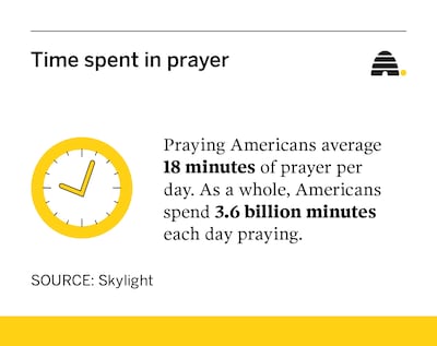 Americans who pray do so for an average of 18 minutes per day, the survey showed. These prayers are often focused on someone other than the person doing the praying.