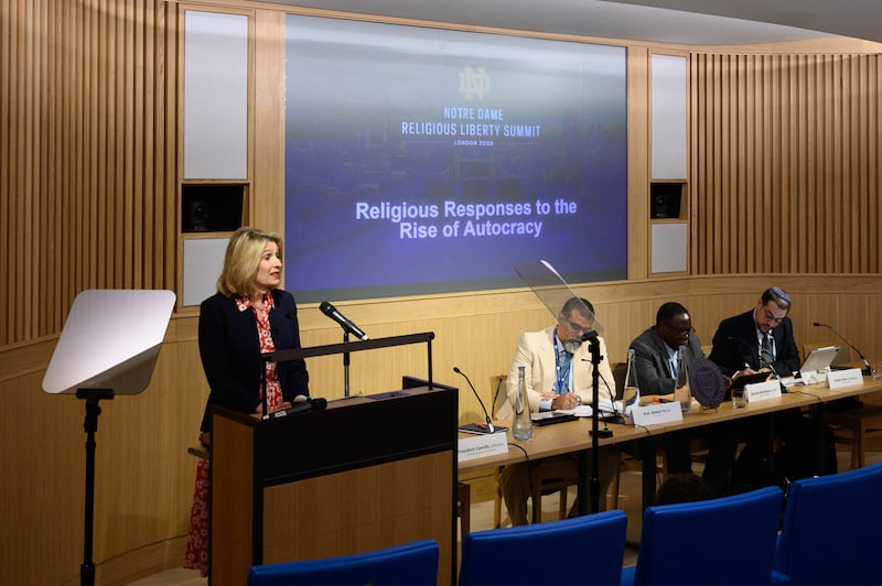 LONDON — Experts on religious freedom convened for the third annual Notre Dame Religious Liberty Summit this week in London, and a well-known British politician was honored.