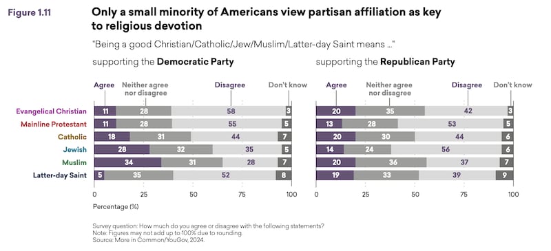 Opens in new windowAcross all faith groups, it’s important to point out that only a subset of believers see supporting either political party as a criterion for being a good or faithful member of their religion: