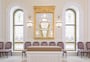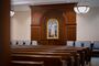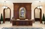 The temple also includes deep brown archways in several places that are designed to lift the eye. In the temple’s chapel, there is another deep brown archway with a golden arch inside that frames a painting of Jesus Christ.